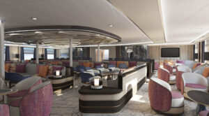 - Multiple indoor lounge areas with floor-to-ceiling windows, open decks with 270-360-degree views, and the Glass Atrium Lounge inside the bow for wildlife watching
