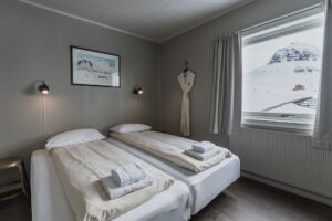Room options are available to suit different budgets and preferences, making it an ideal choice for active travellers. Coal Miners’ Cabins has 76 rooms with 4 room types available. When it comes to dining options, lunch and dinner are served at the Coal Miners’ Bar & Grill. Another choice is the old ‘stormessa’, the miners’ mess hall that served them since 1948. Today, Coal Miners’ Cabins’ chefs prepare warming dishes, including cheese fondue and burgers and vegetarian and vegan dishes. Guests also enjoy a breakfast buffet in the ‘stormessa’, perfect for starting your Arctic adventures.