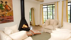 Guests are accommodated in eight cottages, each crafted out of local volcanic stone and adorned with the paintings of Ugandan artists. With cosy fireplaces, overstuffed armchairs to sink into and private butlers on hand, they provide a welcome retreat after a hard gorilla trek.