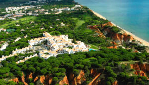 Walk away from the Sheraton Algarve Hotel and you’ll come to the fabulous ochre-coloured Pine cliffs, topped with fragrant conifers. From these sandstone-red edifices, towering high above miles of sandy beaches, you’ll be presented with horizon-wide views of the mighty Atlantic Ocean.