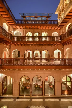 • 13 individually decorated rooms of various sizes including two Shahjahan Suites, six Diwan-e-Khas Rooms and five Jhakora Rooms