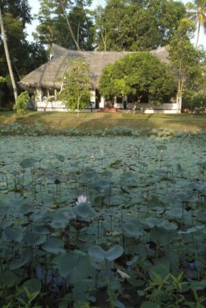 - Low hanging, Kerala-style thatched roofs providing shade and visual appeal