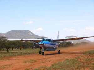 Transfer to Kidepo Airstrip. Tropic Air charter flight Kidepo via Loki to Sedar Airstrip.