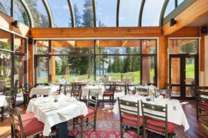 Activities include complimentary canoeing on Moraine Lake and daily hikes along with naturalist presentations every evening in the library. The picturesque town of Banff is easily accessible, and the world-famous Lake Louise can be reached in just a short drive. Guests are treated to delicious regional dishes in the celebrated Walter Wilcox Dining Room, complemented by the warmth of the impressive river rock fireplace.