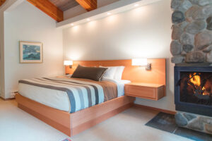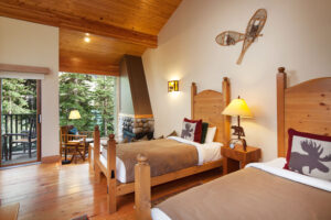 - Nature-inspired earthy interiors, luxurious down duvets and custom, handcrafted log furniture