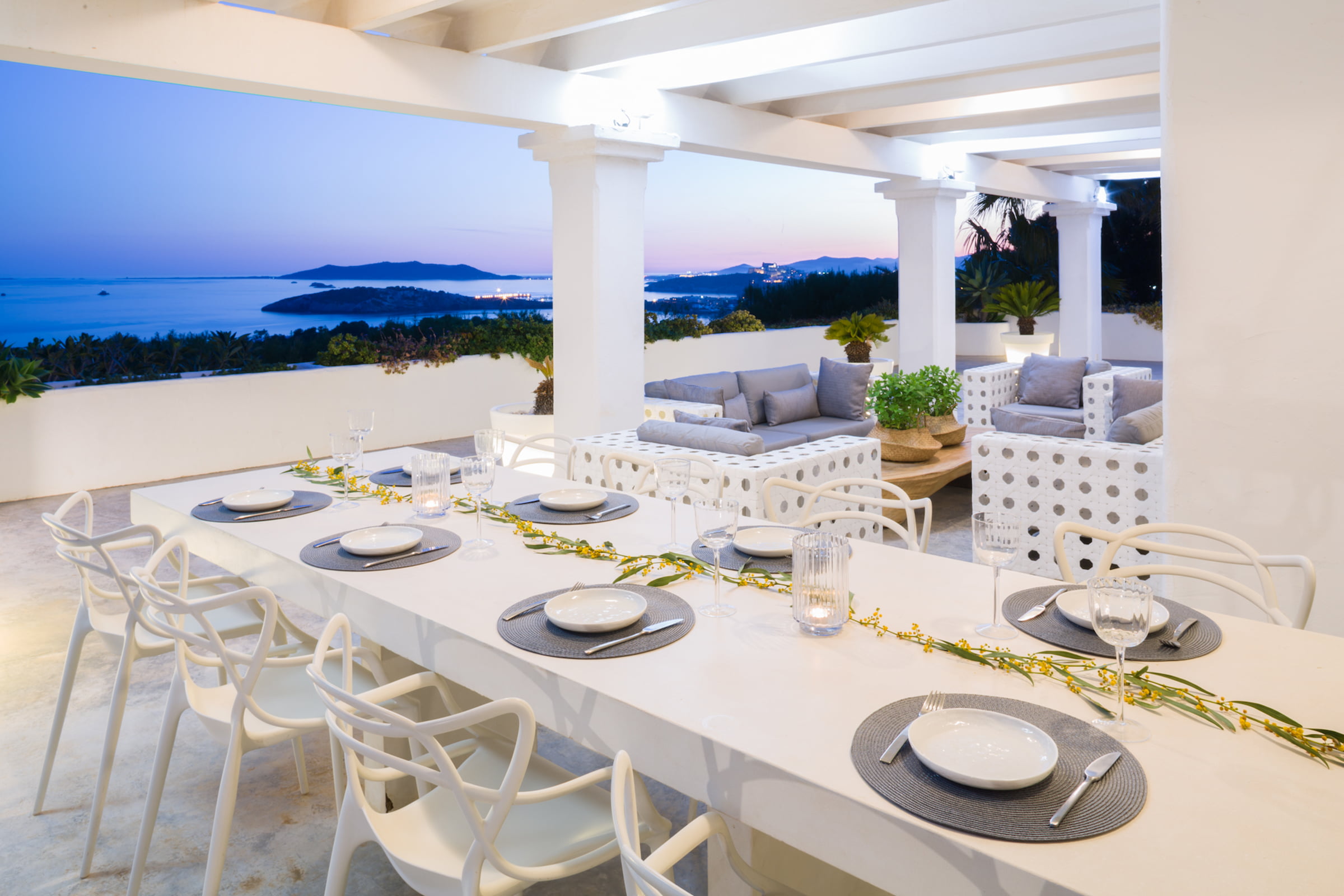 Expansive outdoor terrace with panoramic sea views across Ibiza Town and Formentera