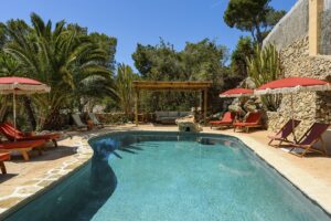 Set in the quiet hills of southern Ibiza, Villa Tinalles offers a calm and comfortable base surrounded by pine forest and long views across the sea and Las Salinas salt flats. Though the house feels private and peaceful, some of the island’s best beaches and restaurants are just minutes away.